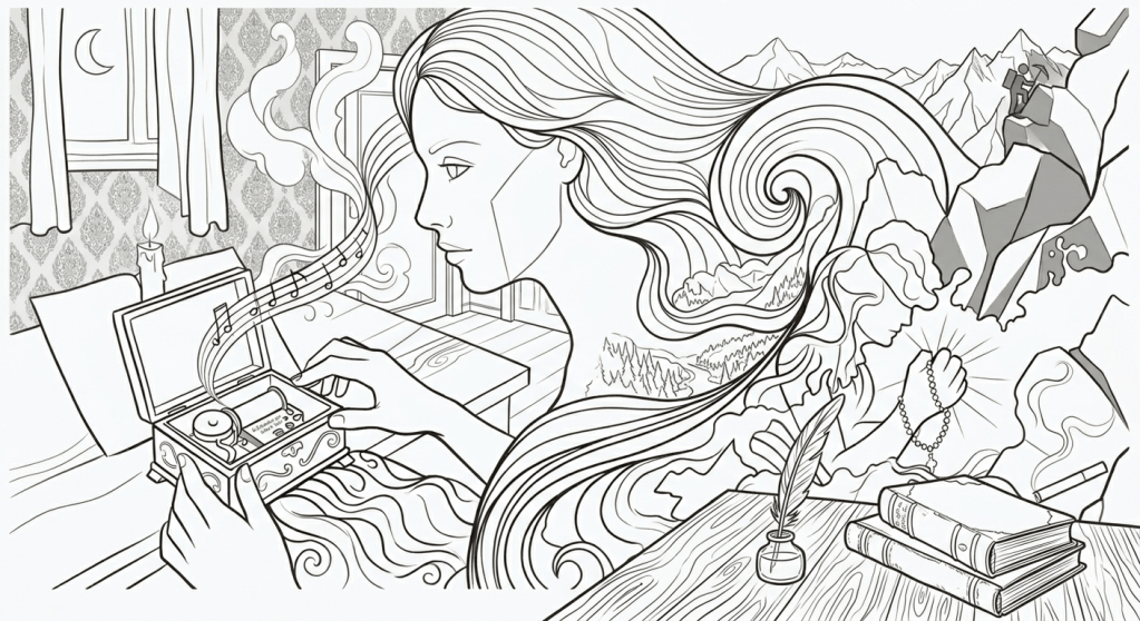 Ábrela que nadie te vea, escucha aquella sutil melodía, arranca jirones de viento, dale cuerda, se haga interminable, dale cuerda y escucha como nacen colores desde la caja y la habitación se llena de irisadas sonrisas, escucha como late cada nota, como se escribe un colorido pentagrama en esta noche donde los temores ya duermen y me arrastro sobre tu piel.